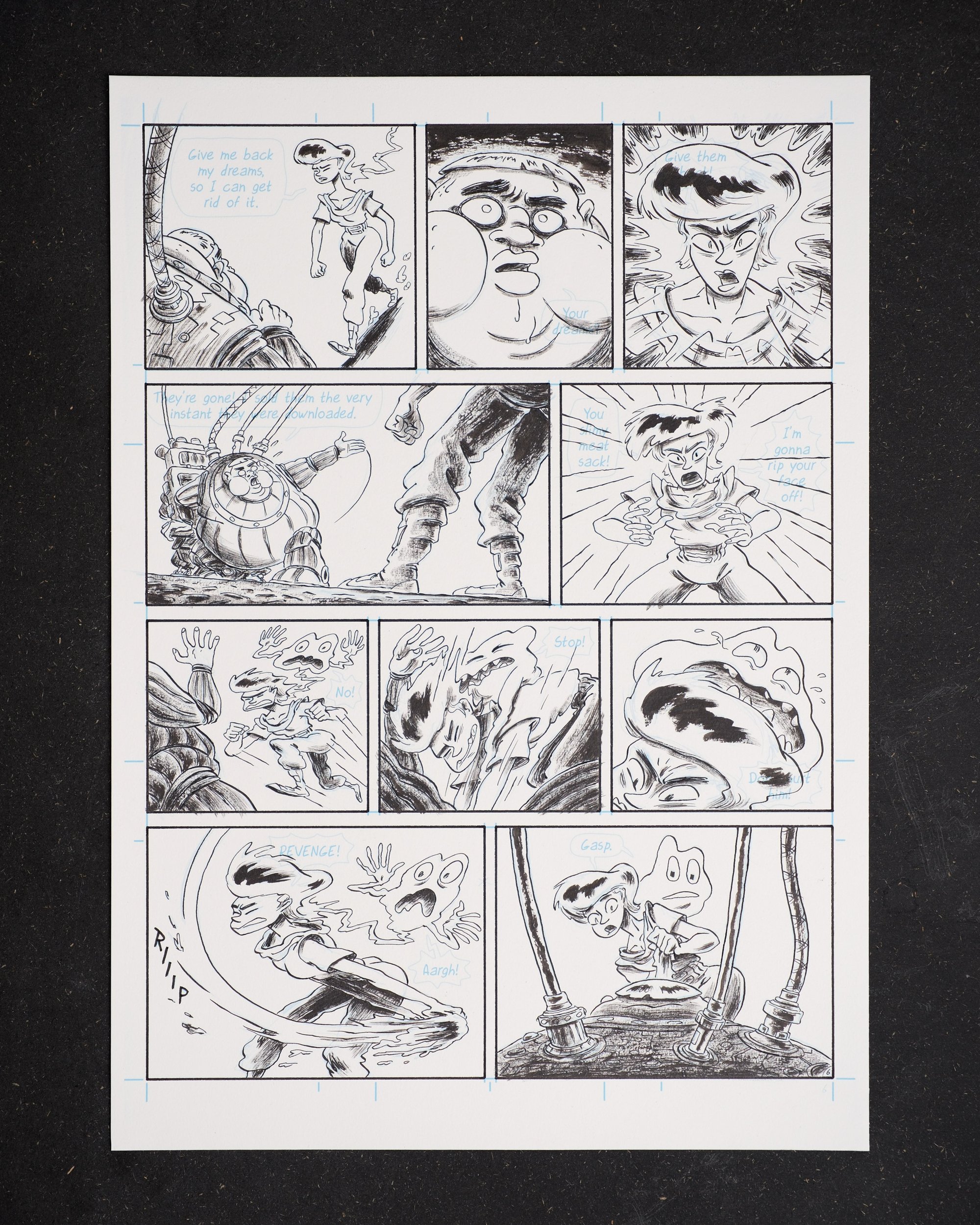 Original page from Métal Hurlant #13 Vengeance. LE VOLEUR HERMÈS DOIT MOURIR Story and art by Rune Ryberg.