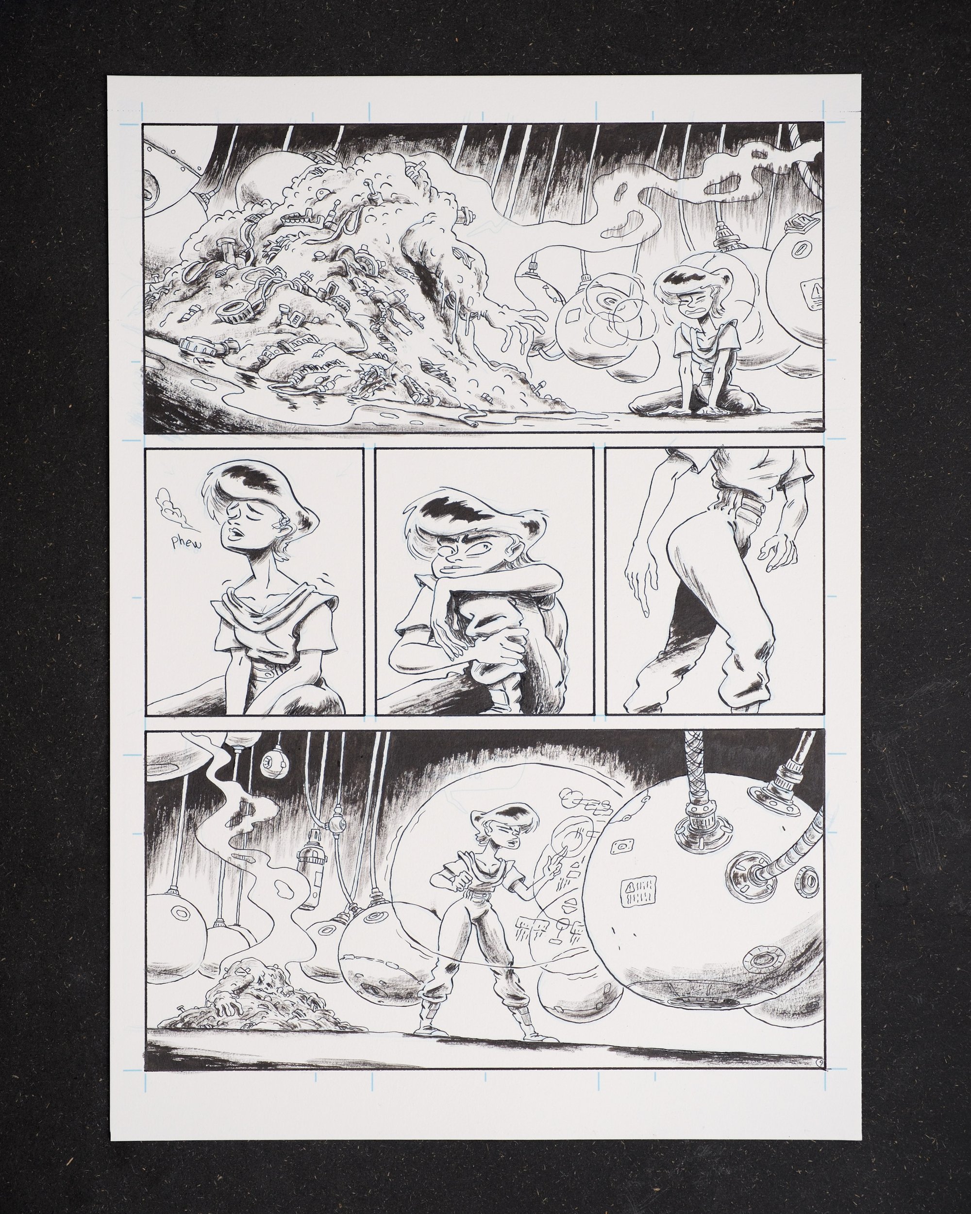 Original page from Métal Hurlant #13 Vengeance. LE VOLEUR HERMÈS DOIT MOURIR Story and art by Rune Ryberg.