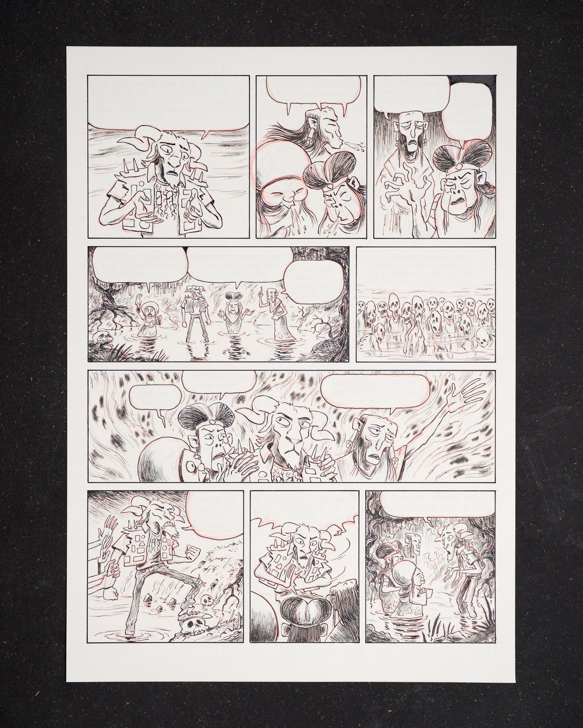 Original page from Métal Hurlant - Hellfest. Goat Face et le sorcier maléfique Story and art by Rune Ryberg.